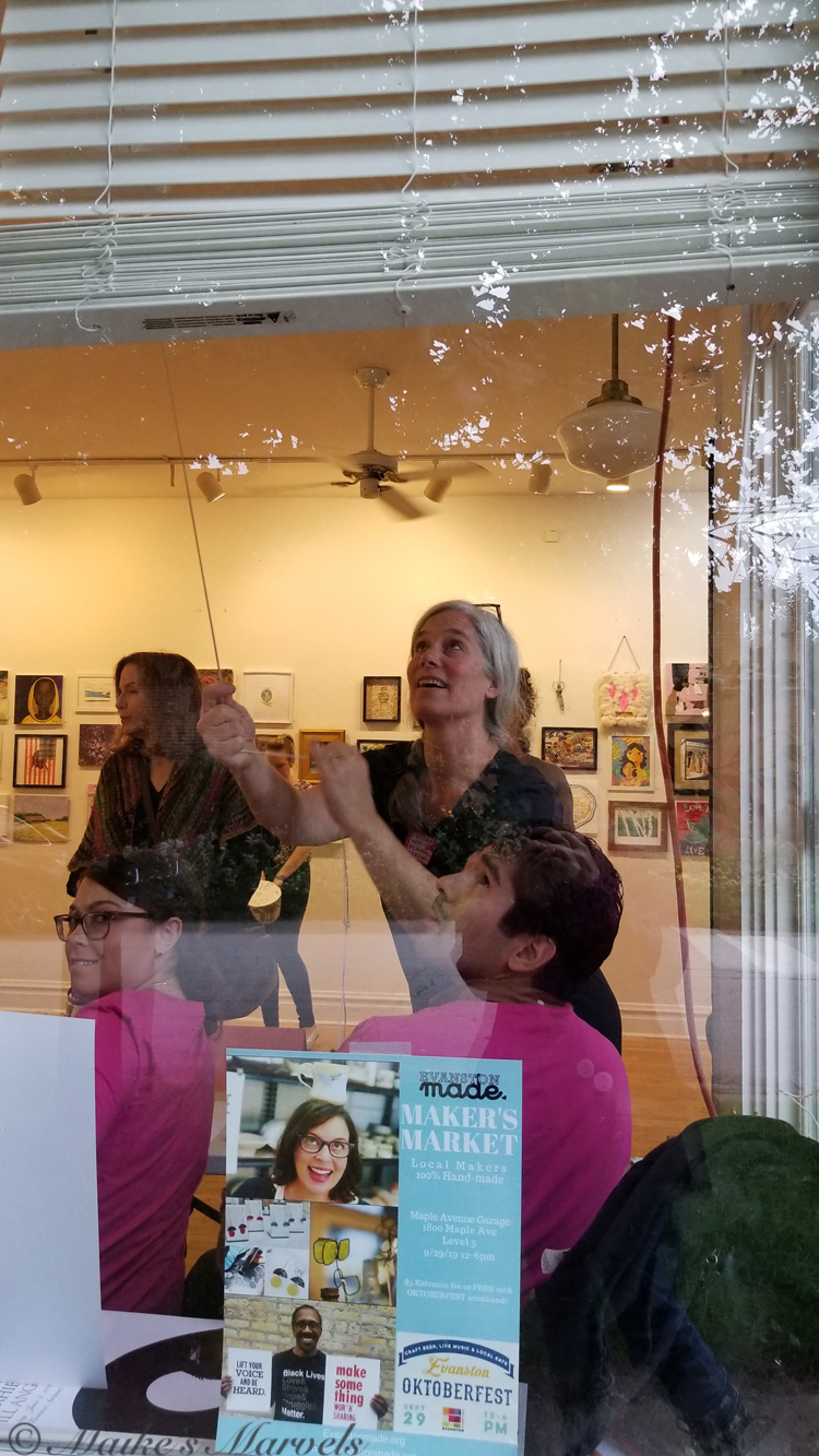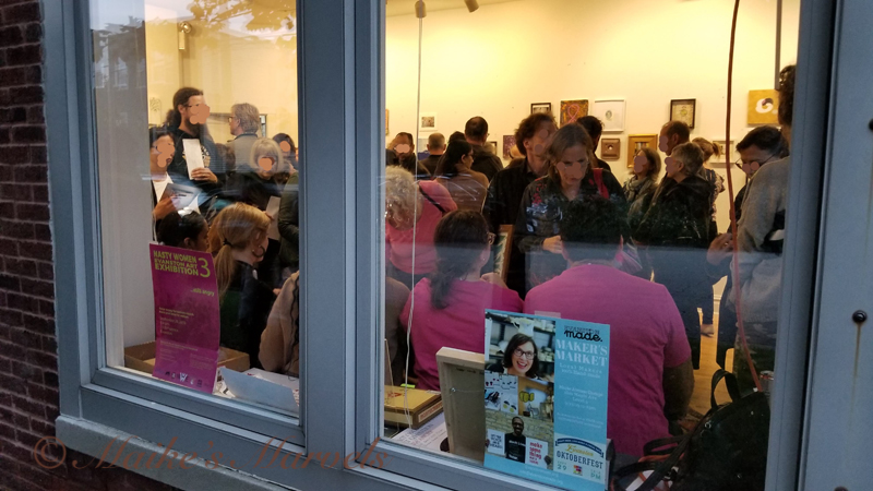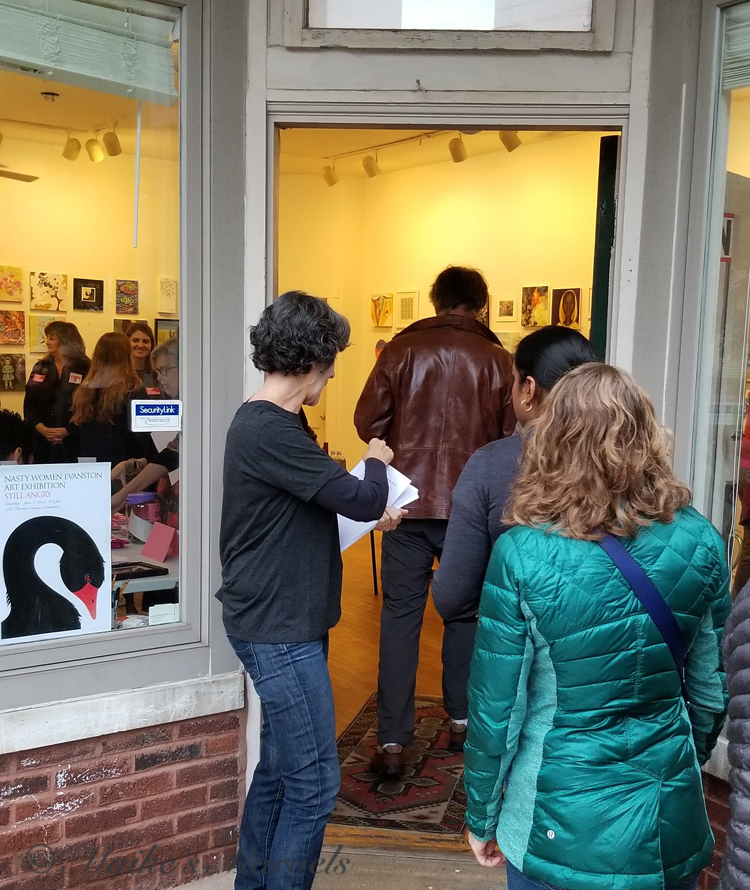 I had to get ready for the next day, but the party was still hopping when I left at 7:30. Check out the event photos with all walls intact on the Nasty Women Evanston Web Site.