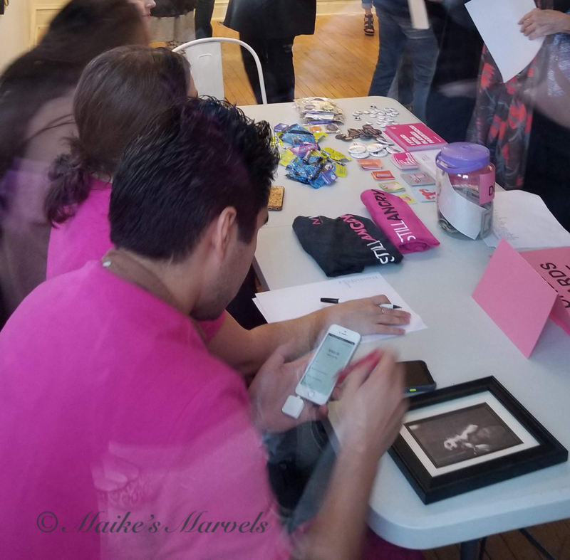 A bell announced when we hit a milestone goal. Our volunteers Lynn Altfeld, Lil Hogan, Cara Lawson, Cisco Hahn, Lydia Sweeney, Janet Webber, Judith Joseph were fabulous. Event Chairs Carolyn Hinske and Jessa Bertone were the ones puling together the 123 pieces of art from women and allies across the nation.