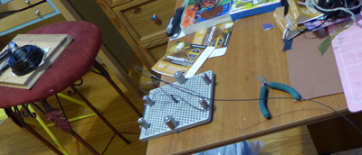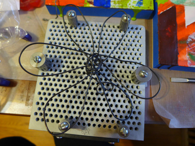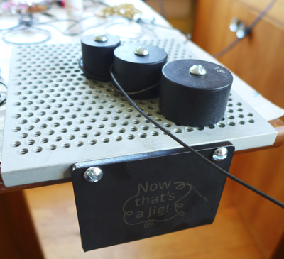 So I laid the hand-wrangled version on the jig and started spacing out pegs. Then the bending began.