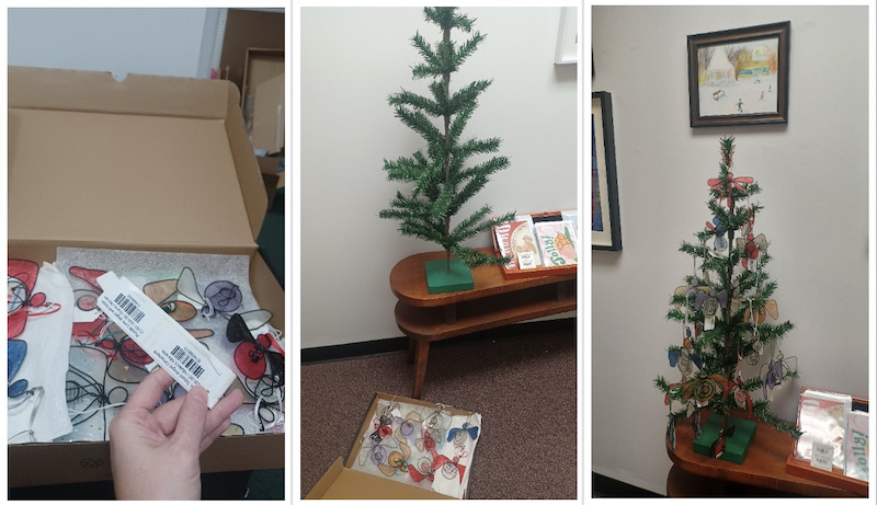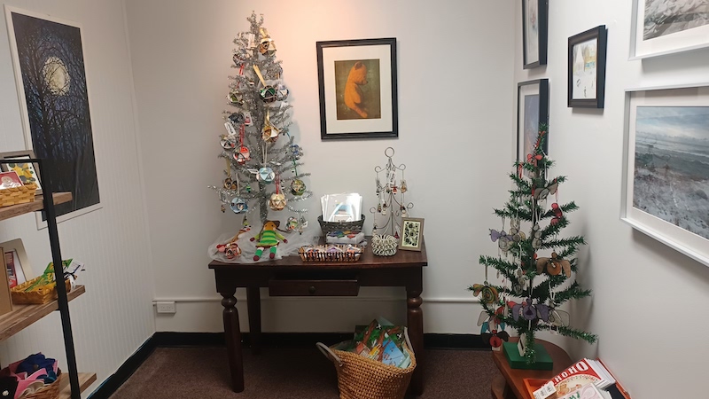 My ornaments are in the Christmas Room, and you can find a variety of other (nonseasonal) art that is made by local artists and reflects options for anyone in your circle whom you wish to bestow gifts upon this year.
