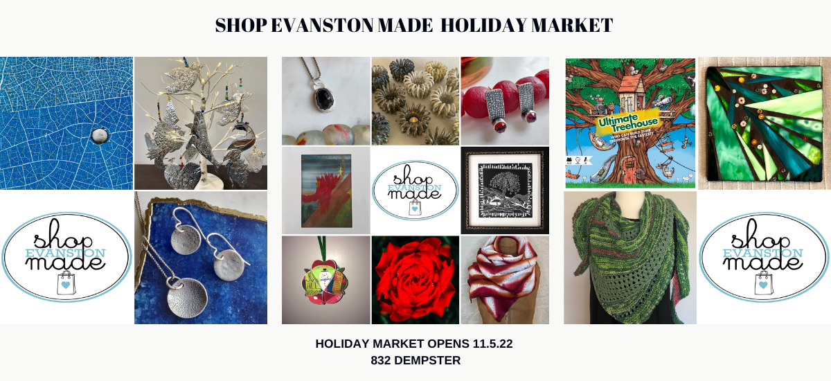 Meanwhile, EvanstonMade — a fabulous local organization supporting all things Evanston and Evanston-based artists — has secured a wonderful pop-up retail space at the corner of Dempster and Elmwood. You can’t miss the vibrant Evanston Art Pillar!