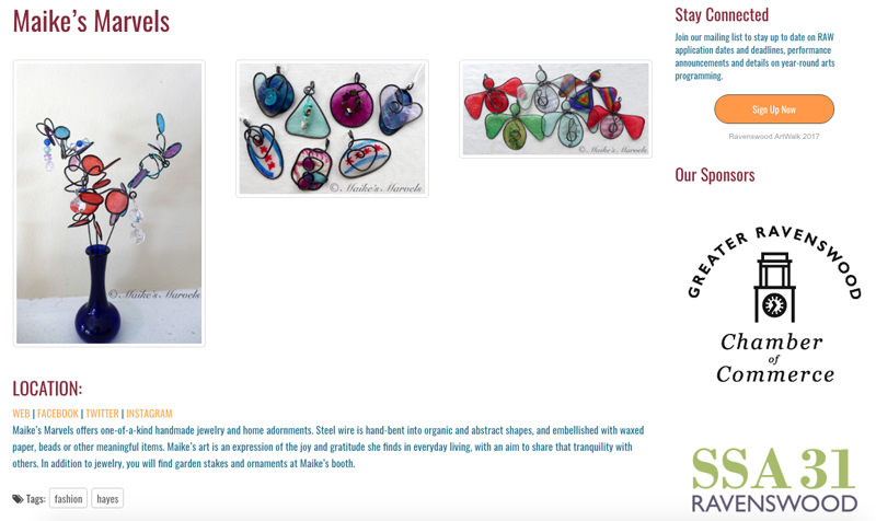 Can you believe it is September already? Suddenly it is time for one of my favorite art fairs of the year, the Ravenswood ArtWalk! This year I return to the Atrium building, formally known as Hayes Properties, and will set up my stands there. I look forward to seeing familiar artists and getting to know new ones.