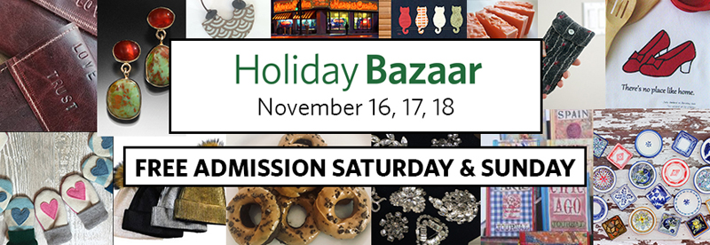 The Bazaar takes place this coming weekend. On Friday, November 16, 5 p.m. to 9 p.m. there will be a ticketed Preview Party. Purchase the $25 tickets on Eventbrite for appetizers from local restaurants and a glass of wine.