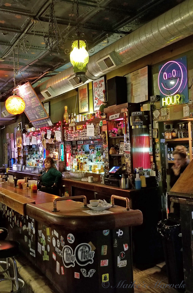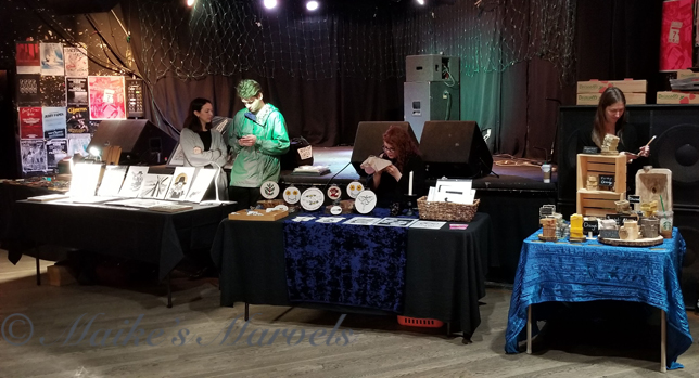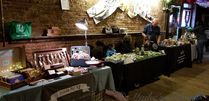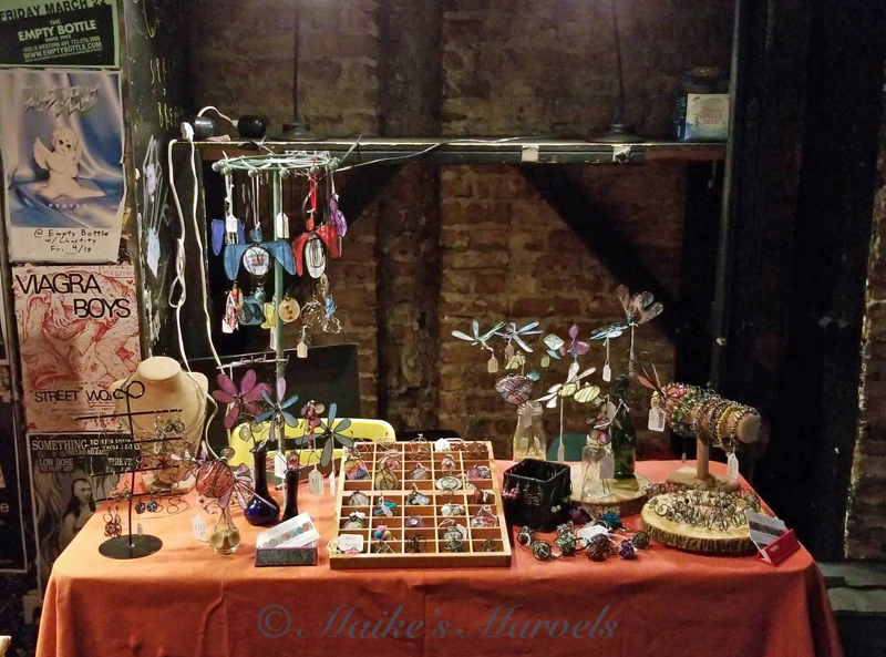 It is fun to hang out at the Empty Bottle and observe all the people wandering through. A lot come to have a drink at the bar, but many are show regulars and like to see new handmade creations.