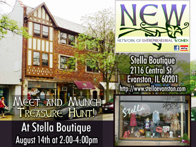 We’ll be meeting there, at 2116 Central St  Evanston, IL 60201, on Wednesday, August 14 from 2 to 4 p.m. Since I share an August birthday with NEW co-founder Erica Thomas, I anticipate some present shopping.
