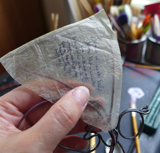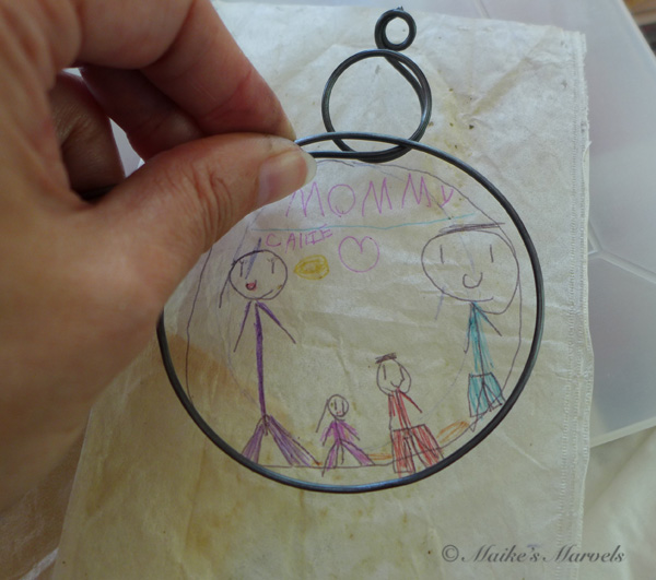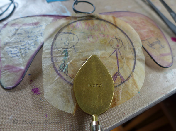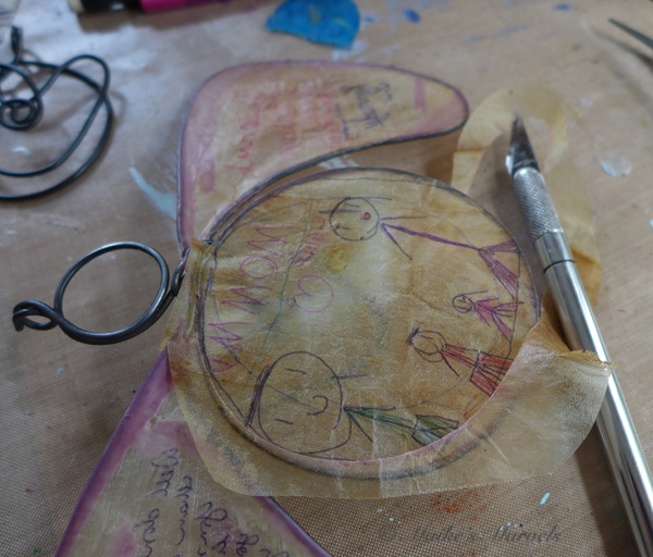 Because the mom loves purple, I added a dash of purple encaustic paint to the wire.