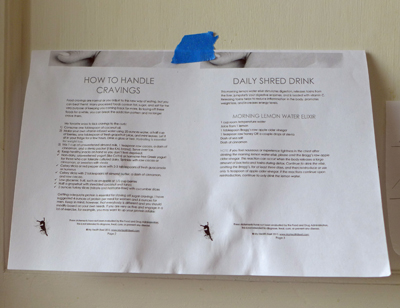 I also went off-plan with the craving suggestions, having walnuts in the evening for their crunch rather than the softer food suggestions pinned to my cabinet. The walnuts were part of a salad recipe, so I wasn’t going entirely off script, and a handful was more effective than a cookie or chocolate bar (or 2, or 3) before.