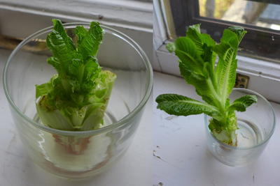 A Pinterest post said that one can grow lettuce from home in just water, so I am experimenting with Romaine Lettuce to see where that goes.