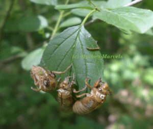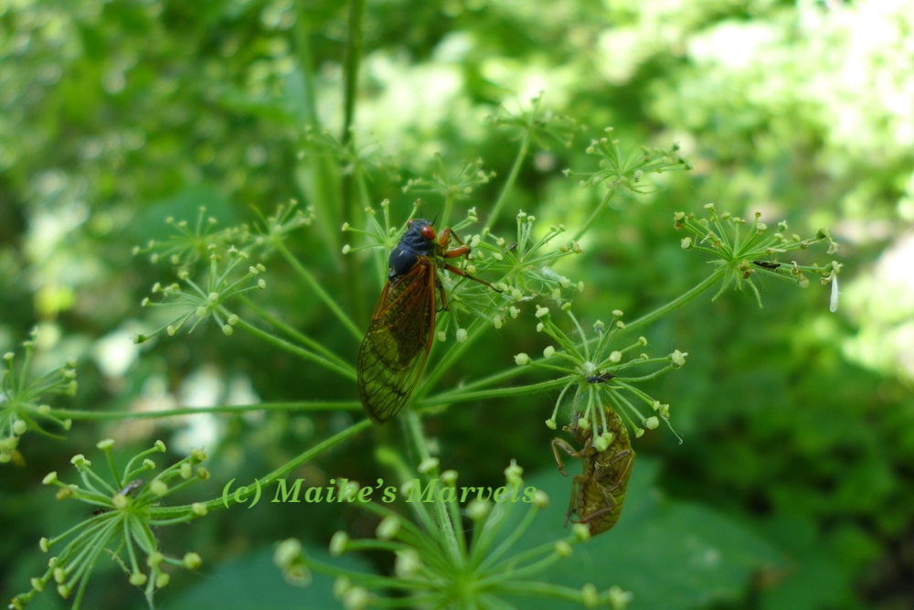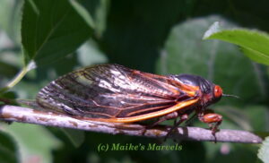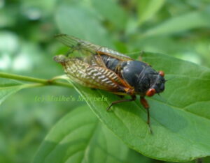 I think our region had Brood XIII, but I have no idea how Brood XIX differs. I just like that they are named Magic Cicadas (Magicicada). 🙂 They do not bite or sting. They just emerge to mate, the females lay eggs in branches, and the nymphs burrow into the ground to emerge 13 to 17 years later. They aerate the soil as they burrow out through holes in the grounds, and become popular fodder for birds and other predators, which helps other insect populations thrive. Their discarded shells serve as fertilizer, so overall they are seen as very beneficial to nature’s life cycles.