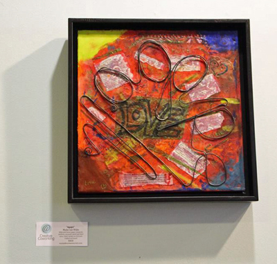 They also chatted under my encaustic and steel wire works on the opposite wall.