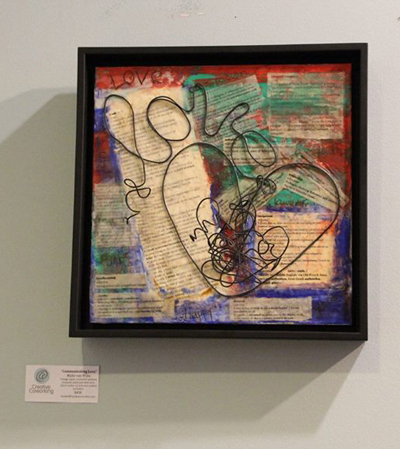 On March 18 numerous Evanstonians perused the artful mixed media collages of Melanie Deal.