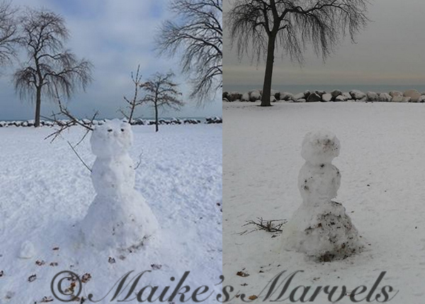 I took a winter stroll after garaging the car (same snowman, 1 week later).