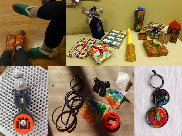 There was a fun Gift Exchange party at which my Ugly Rainbow Sweater Frosty found a new owner.