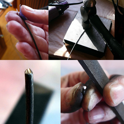 I prepped the wire by sandpapering off the grime, hammering it straight and filing off the edges.