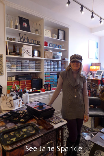 I won’t be surrounded like bolts of fabrics, but instead get to boutique sit for See Jane Sparkle for a spell. Sara Jane Abbott jumped on the opportunity to lease a bigger location just a few blocks away, and is graciously hosting guest artists in her original store for the holiday season.