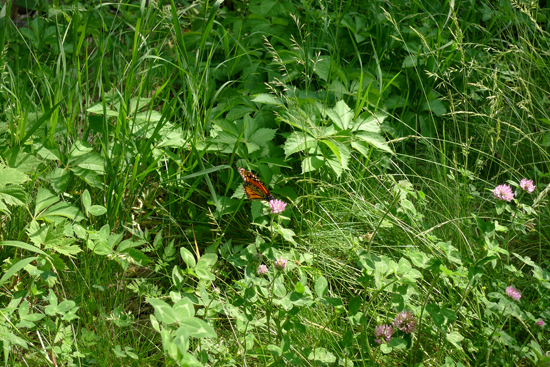 Just off I-94, the visitor center was easy to find. On a Sunday it opens at 11, so I was a bit early. A monarch lured me onto the path without a map, however.