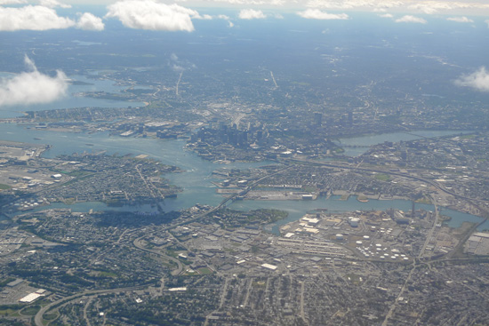Although I’ve been traveling quite a bit this summer, my birthday trip was in September. I attended Kim Bernard’s Maine Coast Encaustic Workshop Retreat. It was a lovely week of learning, fellowship and lots of eating. On my way there, I had a layover in Boston. I flew in to Logan Airport, and the gorgeous view made me forget all about my flying fears.