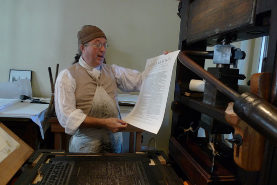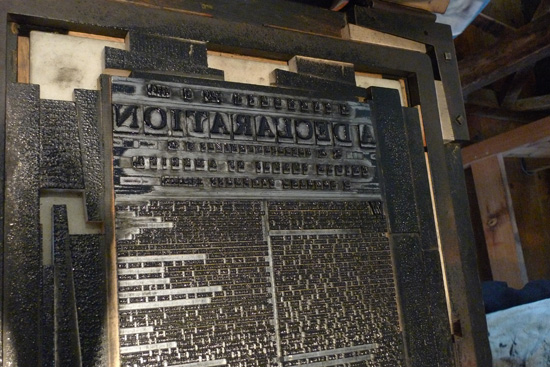 The Declaration of Independence was on the press, with custom re-created type based on the original print.