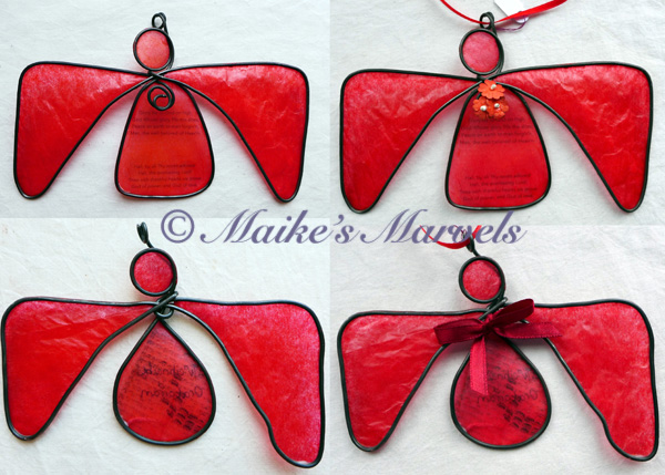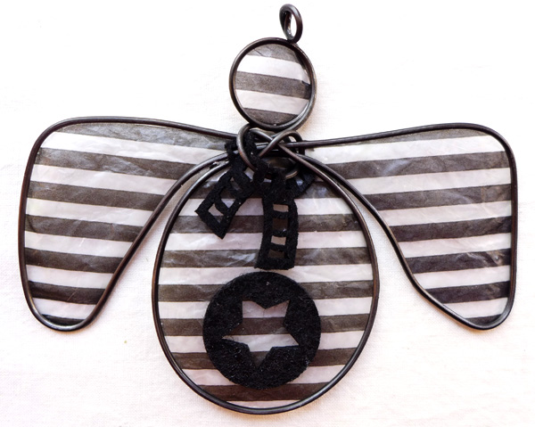Sometimes the multiple transports of the ornaments take a toll, and when this angel’s wing came loose I decided to refresh its wings entirely, while humming Mr. Mister.