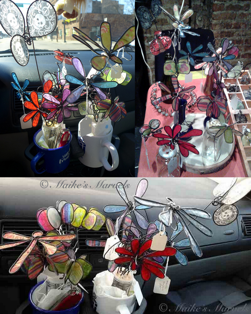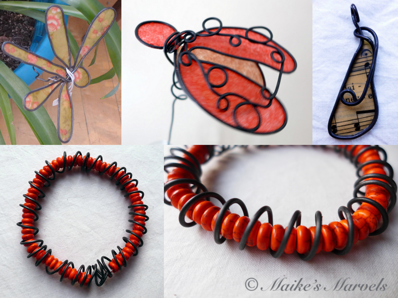 - Maike’s Marvels by Maike Van Wijk ~ Pendants, earrings, necklaces, keychains, bracelets and ornaments are hand-wrangled from steel wire and then embellished with encaustic-medium-treated paper or vintage ephemera to gift to your loved ones or for yourself.