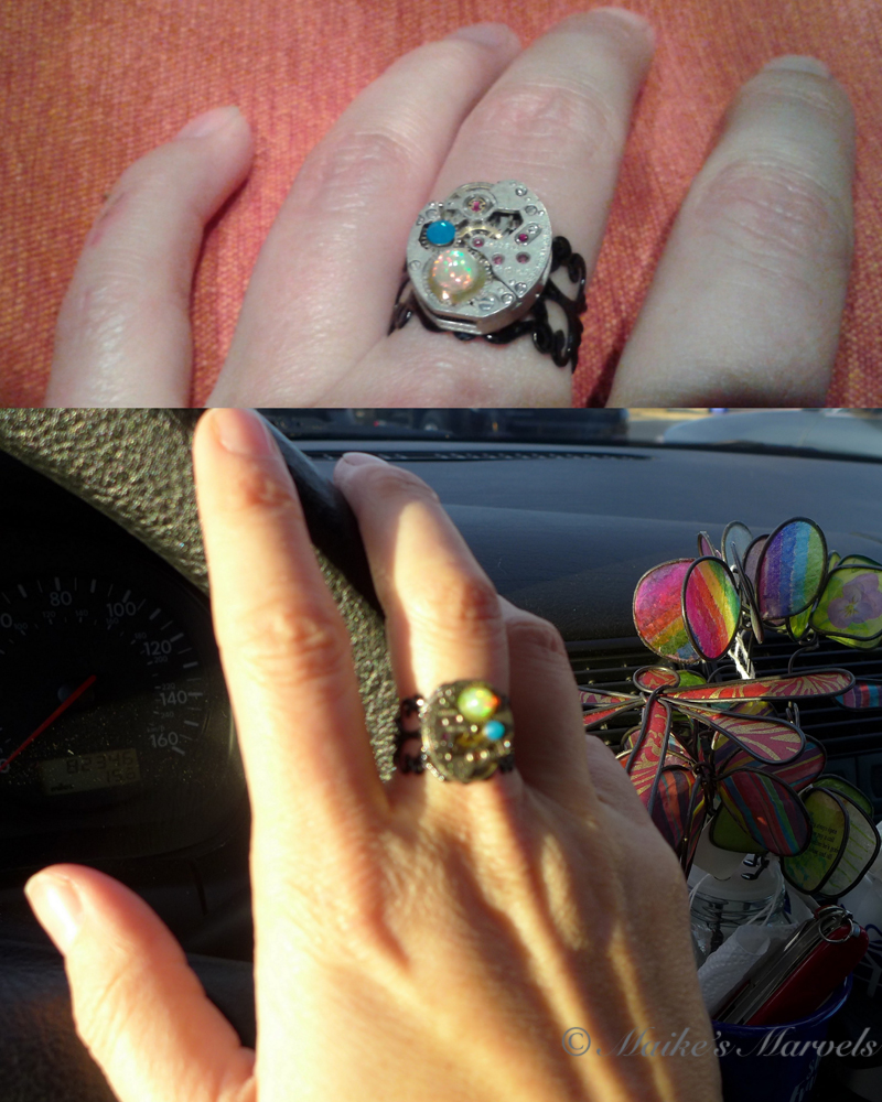 I couldn’t resist an opal steampunk ring by Scranton Steam and picked up yummy cream for my hands from Soapably.