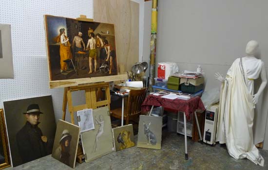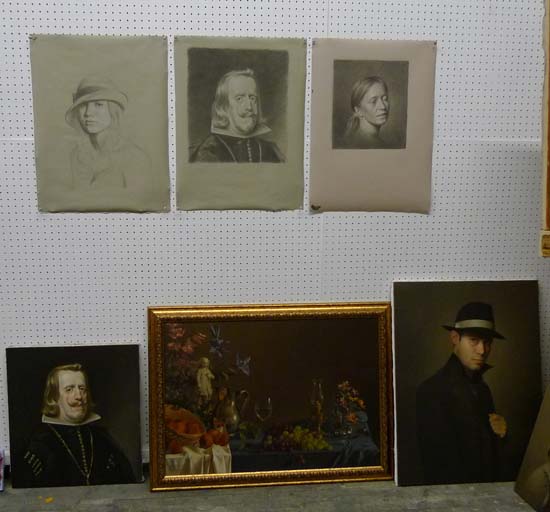 Brett Edenton recently moved into his bright and spacious studio, and creates portraits (human and canine) and still lifes with oils and charcoal. He also hones his trade by copying the works of masters.
