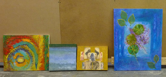 Brave Rhonda Goldstein brought pieces she had never shown outside of her home before and invited comments on a painting she had just started. We had a lovely conversation about drawing the balance between the materials we have on hand with discovering new mediums and embarking on a new collection of art supplies.