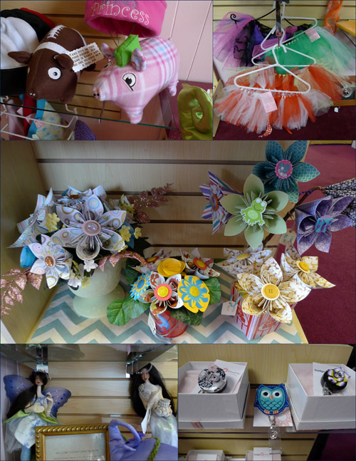 The store is full of wonderful gift items, including soaps, lotions, candles, baby blankets, jewelry, fairy dolls, parasols, wall art, hair adornments, children’s clothes, stuffed animals, quirky decorative items, handbags, doll clothes and more.