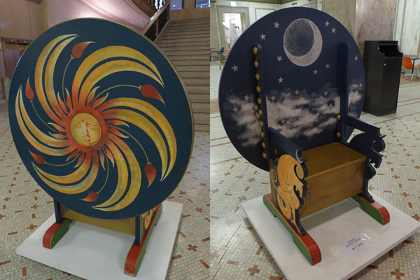 I walked in on a prototype of the story chair from the Conrad Sulzer Regional Library, which apparently doubles as a table and turns into a throne as stories are told.