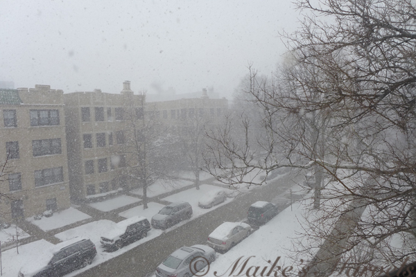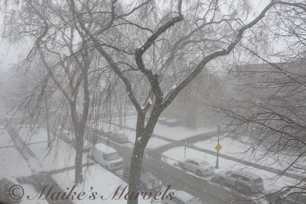 The winterscape was lovely for a bit, until white-out conditions made my windows hard to see through.