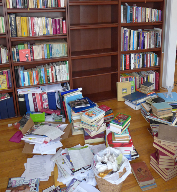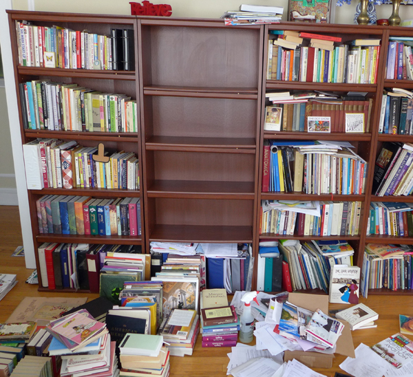 So I systematically cleared each shelf, dusted off the books, and considered which ones to give away.