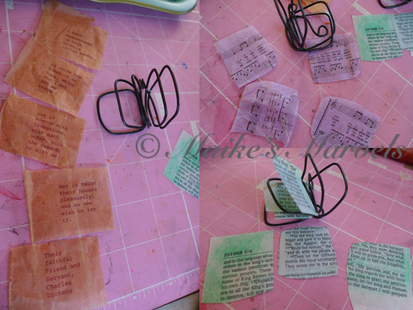 Getting the pages adhered is painstaking, during which I am learning about how to wrap the wire differently and the number of pages that work best as I go.