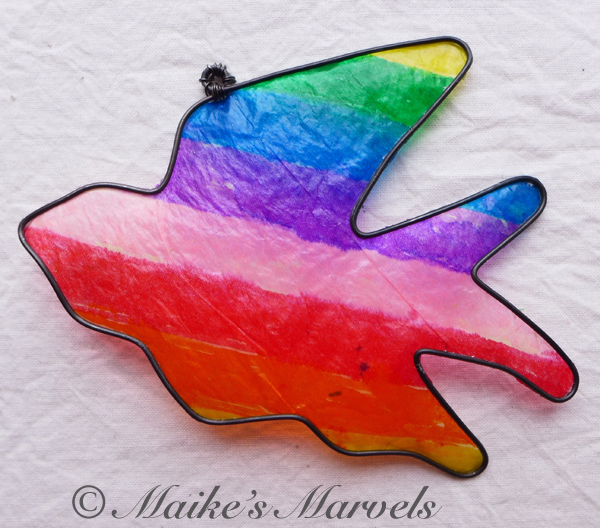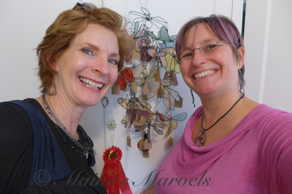 We had a lovely morning chatting while I demonstrated how to wax a rainbow onto the wire bird Brenda had brought.