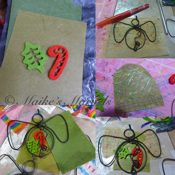 I used some of my Belgian felt pieces as embellishments, picked some ‘ugly’ paper, and then ‘uglified’ it more by creating as much glittery pattern as possible on the body and wings.