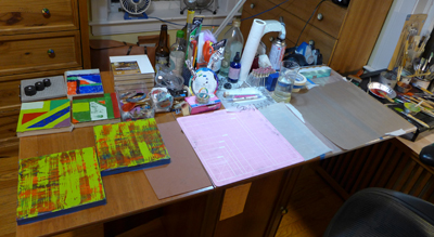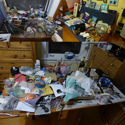 With everything in place I felt compelled to tackle my collage work area, which had been in perpetual chaos from being both a jewelry and a wall art station.