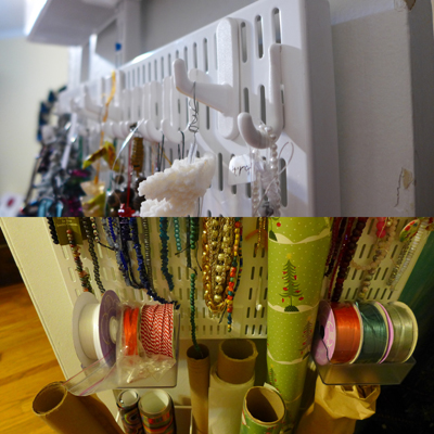 The bead boards are my favorite.I bought more hooks and ribbon holders to round out that design.