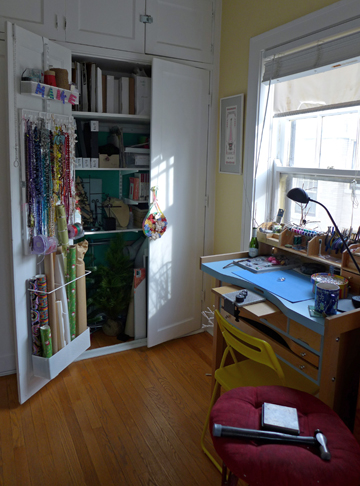 In November I met Sandy Spatz of Step By Step by Sandy, and I blurted out that I wanted to organize my studio after the holiday season. Once out, the words became reality, and Sandy followed up with me in January. We soon set a date for her to assess the damage, and she was very understanding of how my studio functions for me.