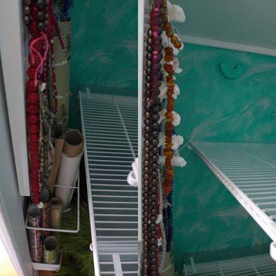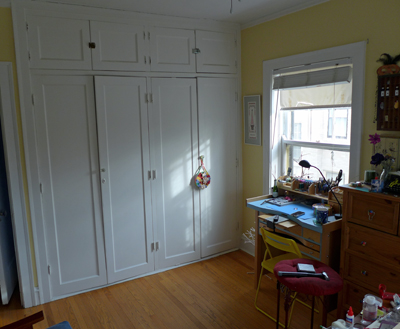 It felt very empowering to dedicate the closets to my art, and to truly claim them as my own with the paint color. Guests can store their clothes over the doors, and I can always repaint when it comes to selling this place.