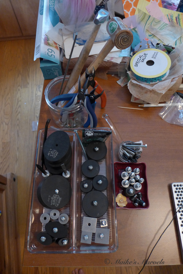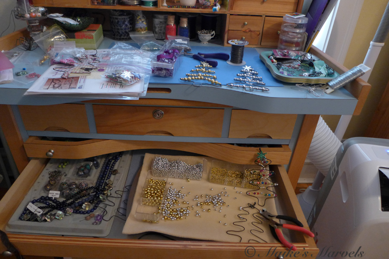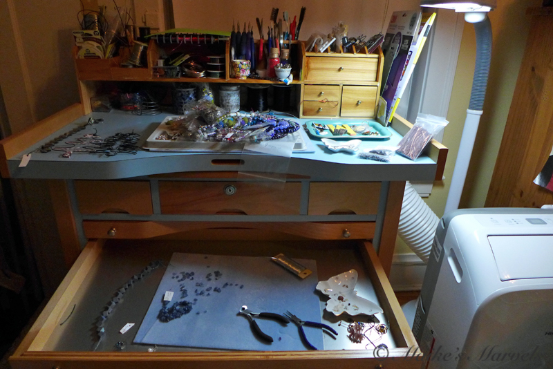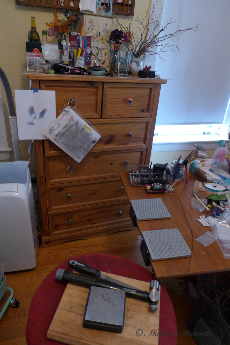 After my Eras in Time Preview creation, it was time to clean my studio. My friend had requested a beading day, which also served as a handover of the Bead & Button show strands we had decided to split with each other. Another prompt was Brenda Schweder’s post about our little Now That’s a Jig! corners in the world.