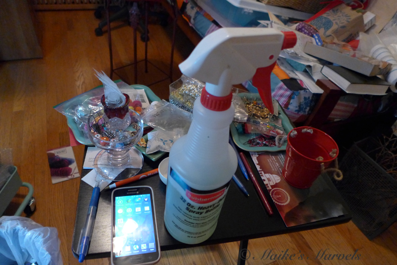 The reward was picking out my projects for the next day, after restringing a bunch of beads I had taken off for a ring. Soon I had finished that portion of the studio. It looks so nice when things are where they belong!