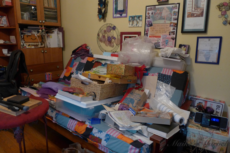 I drew the line at the sofa though! One side is paper, but the other has lots of things I need to make decisions about, which could end up becoming a whole new closet makeover, so I had to let it be!