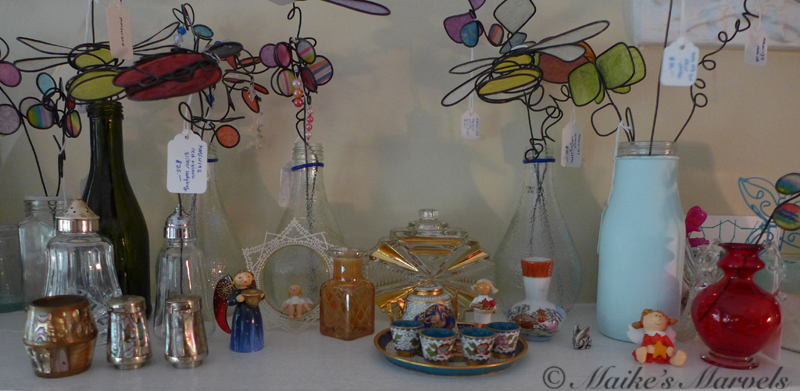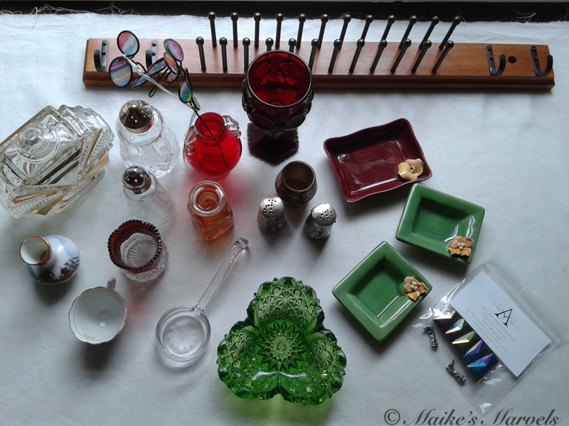 The other finds live with my stakes for now until I have figured out what to make for them. And yes, I did go back and get the cute teaset and the typing stand.