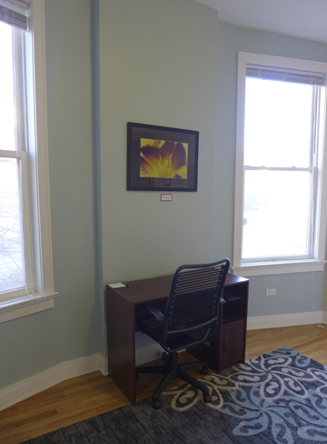 Not only does this bright space offer a positive vibe and comfortable working atmosphere for business owners, but all walls are decorated with local art work that is available for sale.