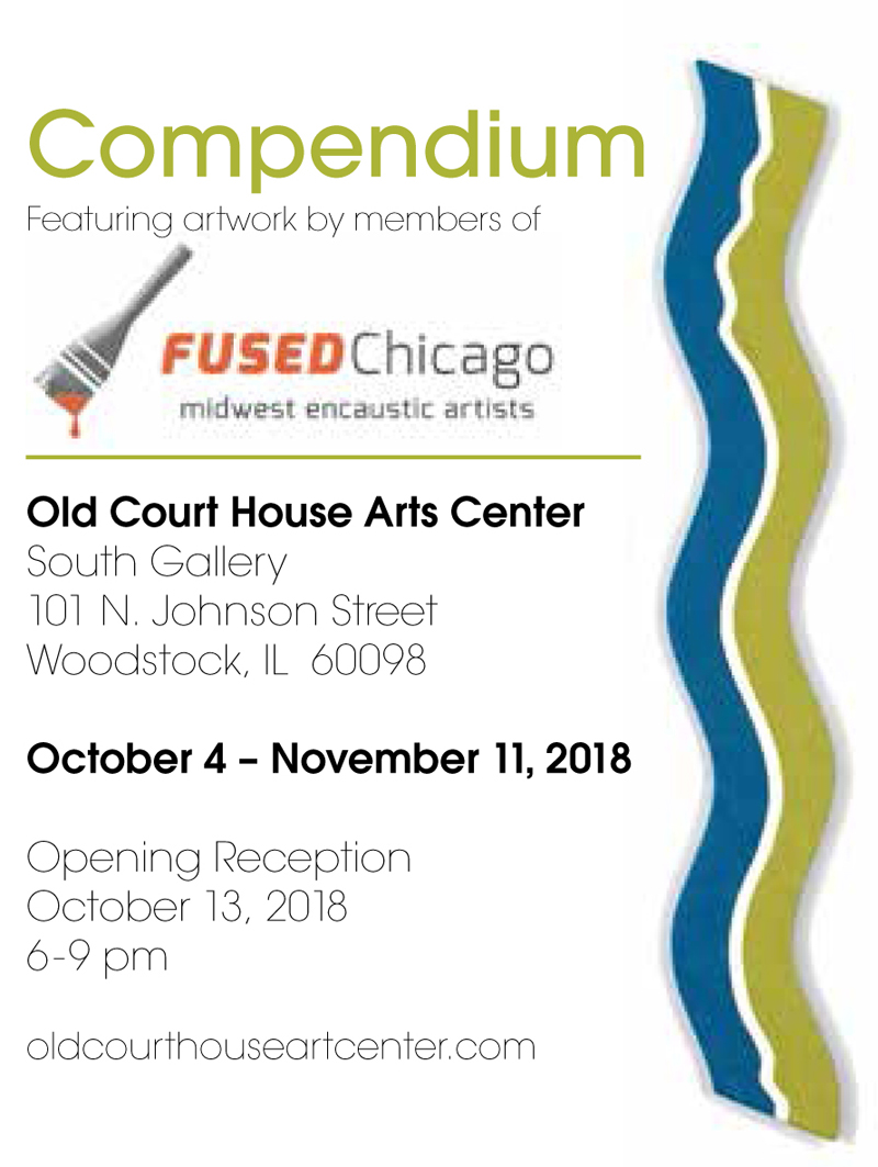 COMPENDIUM: a collection of information about a subject. The show takes place October 2, 2018 – November 11, 2018. Opening Reception is Friday, October 13 from 6-9 pm at Old Court House Arts Center, 101 North Johnson, Woodstock, Illinois.
