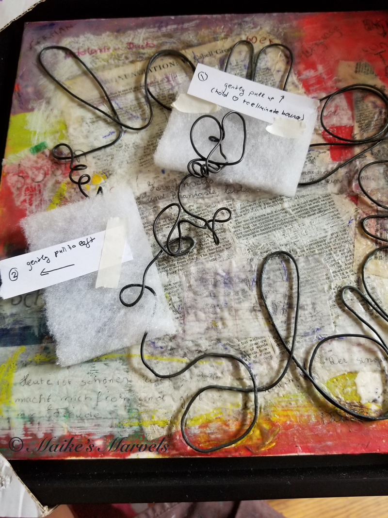 My car is without A/C right now, so I was grateful our board members were willing to transport art after a recent member meeting. Of course giving my work into the care of someone else made for an interesting challenge. I had never packed my wired encaustic boards before.