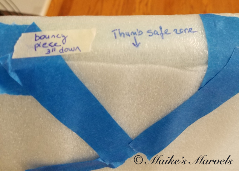 Then I had to layer up padding wit bubble wrap and foam. Realizing my unwrappers wouldn’t know where the wire was, I made copious ‘wire here’ and ‘finger safe zone’ notes.