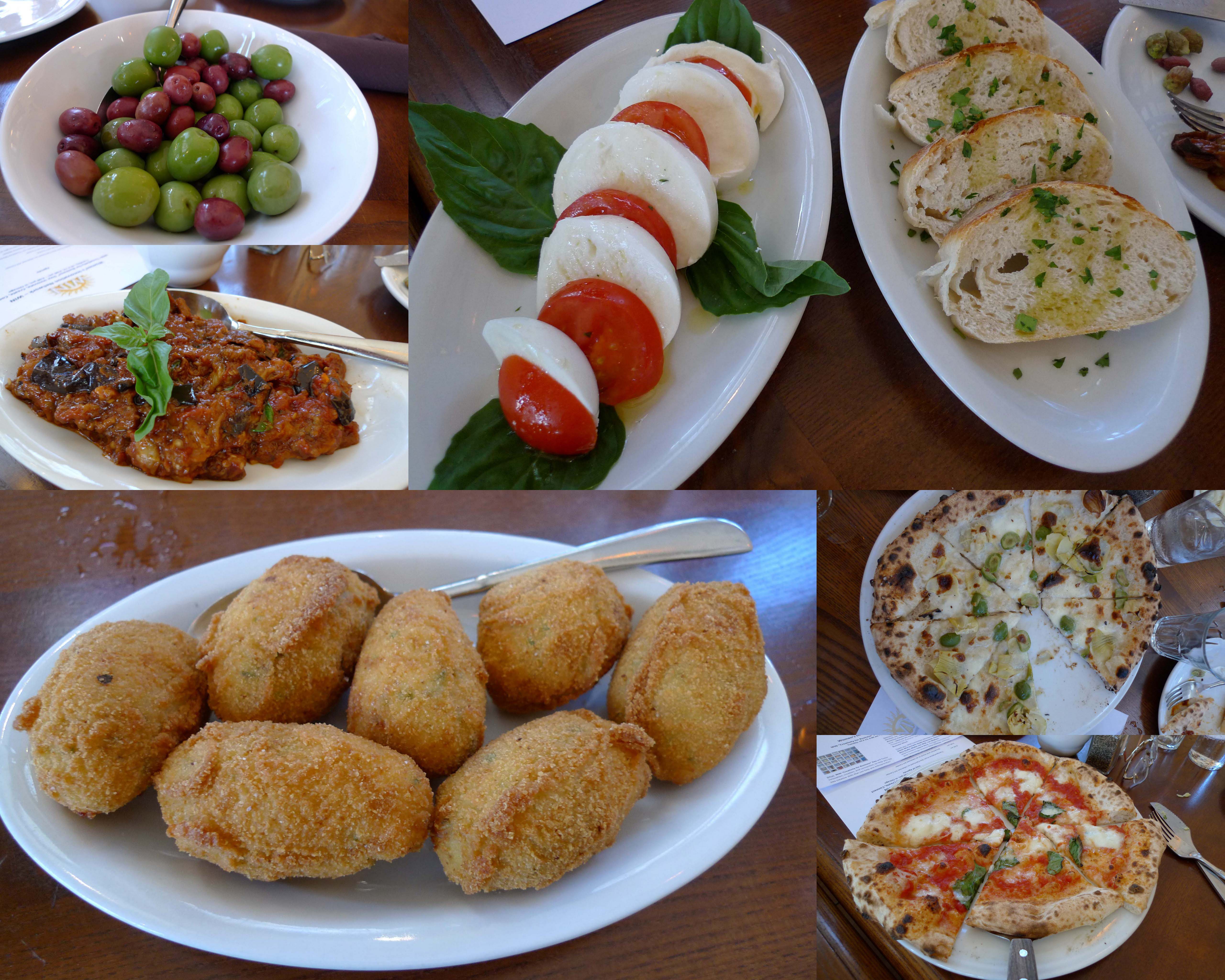 After a brief brainstorming session as a group to get our own innovative juices flowing, we walked over to Spacca Napoli, where we were treated to a lavish menu of Caprese Salad, Malanzane (a yummy marinated eggplant), and Bufalina and Cacio di Bosco pizzas. I also opted for Lacrima Rosso, a lovely red wine.