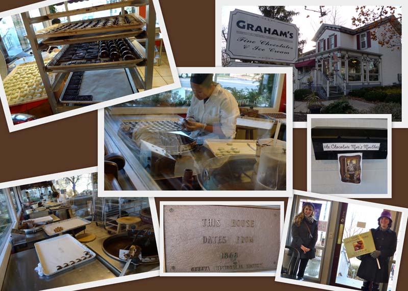 After a bit more boutique browsing it was time to gather for the tour, which started at Graham’s Chocolates. Founded 24 years ago, Graham’s likes to demonstrate chocolatey freshness with an open kitchen, so we watched as cookies were being dipped in dark chocolate to become a groom’s tuxedos.