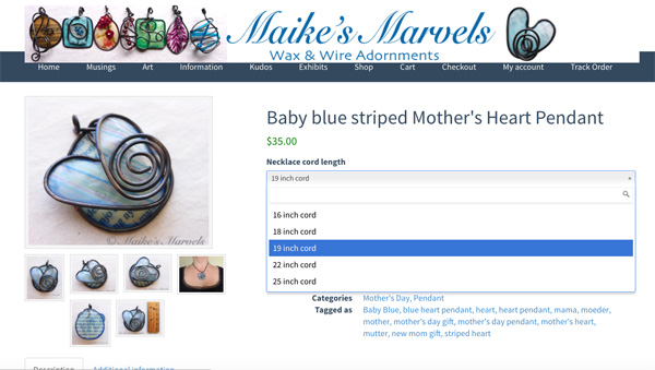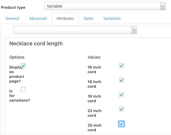 Then I asked tech support why I couldn’t figure out how to get my necklace length options to work, and of course all I needed to do was start the attributes from scratch instead of fiddling with the one I had created prior to the ecommerce migration.