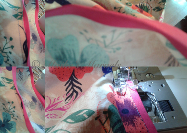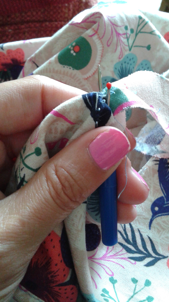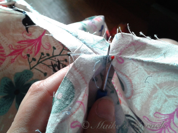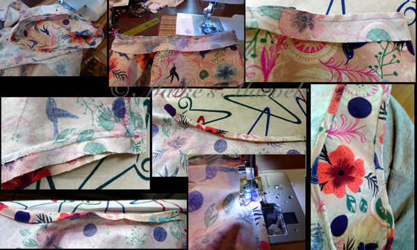 I know the flaws the armholes have, but hopefully the fabric will detract from all the (re)stitching. Then, in the final stretch, it turns out my neckline was larger than the bias I had cut out.